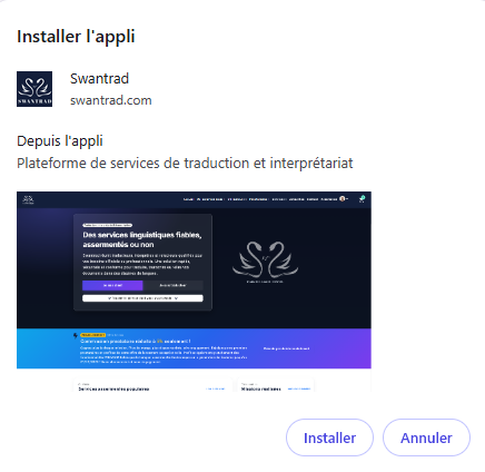Swantrad est une application web progressive (PWA). Vous pouvez l’installer sur ordinateur et sur mobile pour un accès plus rapide, en plein écran, avec une icône sur votre écran d’accueil.